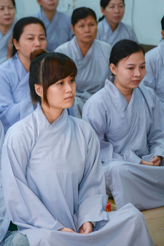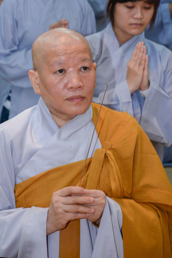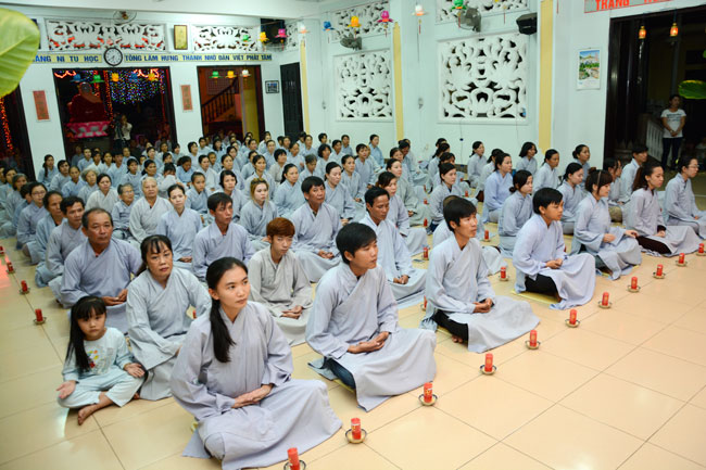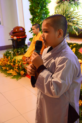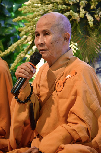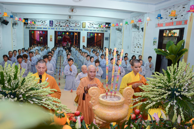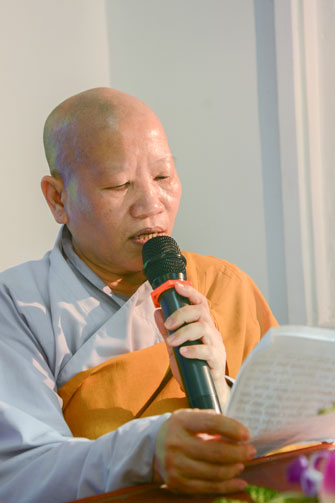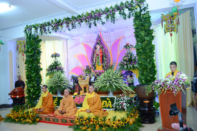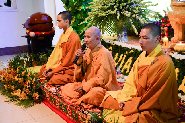 Cuối buổi lễ là lời huấn từ của Thượng tọa chứng minh. Ngài ôn lại công hạnh cao cả của đức từ phụ A-di-đà, đồng thời sách tấn quý Phật tử phát nguyện niệm Phật để có được an lạc ngay hiện tại và vị lai.
