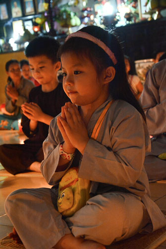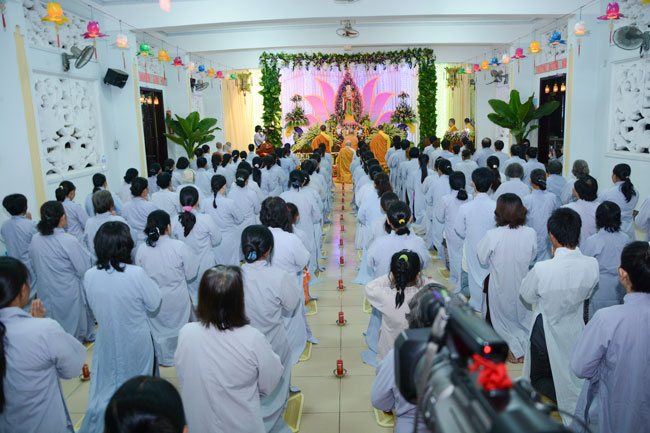 Dù cơ sở vật chất còn nhiều hạn chế, sân nến còn hạn hẹp nhưng với tâm thành một lòng tri ân và báo ân đến đức từ phụ A-di-đà Ni viện đã mạnh dạn tổ chức đêm lễ hội đầy ý nghĩa này. Đêm hoa đăng được bắt đầu bằng phần khai mạc do Ni sư trụ trì tuyên đọc. Buổi lễ càng ý nghĩa hơn khi nghi thức truyền đăng được bắt đầu, đây là phần đẹp và ấn tượng nhất trong đêm lễ.