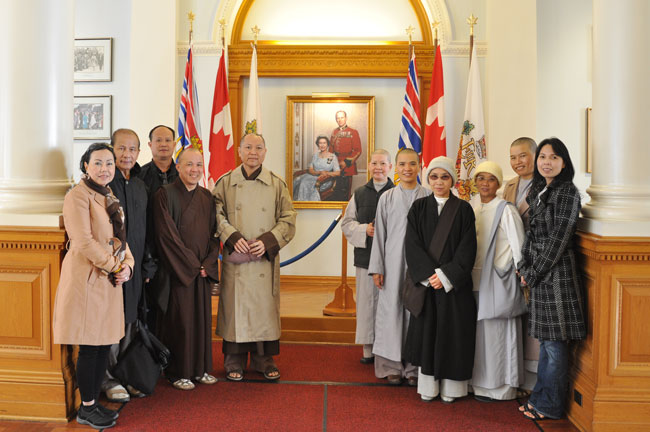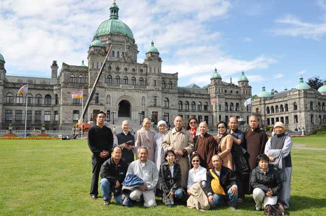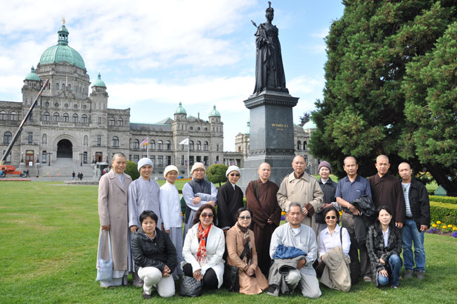 Điểm đầu tiên đoàn ghế thăm là Chùa Vạn Hạnh tại 933 Colville Road Victoria, British Columbia, V9A 4P4 do TT. Thích Pháp Ấn trụ trì. Ngôi chùa đang trong quá trình sửa chữa và dần hoàn thiện. Kế đến là tòa nhà Quốc Hội hiện nay của bang British Columbia, được xây cất từ năm 1897, là trung tâm hành chính và gắn liền với Nữ Hoàng Elizebeth I.