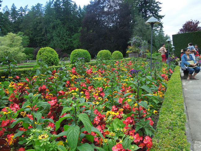 Buổi chiều, đoàn đến vườn hoa Butchart Gardens, khu vườn này được thành lập cách đây hơn 100 năm. Butchart Gardens là quần thể gồm nhiều khu vườn hoa rất đẹp: vườn hồng, vườn hoa kiểu Ý, vườn hoa kiểu Nhật…và hàng trăm chủng loại khác, khiến du khách đến đây tham quan như lạc vào thế giới của loài hoa.