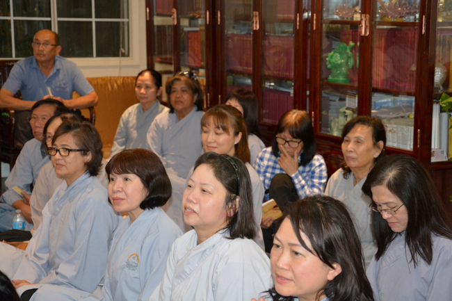 Chiều cùng ngày, TT. Thích Chân Tính có mặt tại Hiền Như Tịnh Thất do Sư cô Thanh Diệu Pháp trụ trì, để giảng pháp cho quý Phật tử. Trong buổi nói chuyện, Thượng tọa chia sẻ về năm triền cái theo kinh Tăng Chi Bộ. Đó là, “tham dục, sân hận, hôn trầm thùy miên, trạo hối, nghi”, đây chính là năm yếu tố khiến tâm bị che đậy, trói buộc và uế nhiễm. Hiểu được những mỗi nguy hại này, Phật tử phải lắng nghe, suy nghĩ và thực hành theo lời dạy của đức Phật. Được vậy, chúng ta sẽ được an vui hạnh phúc; và được ví như người hết nợ, hết bệnh, được tự do, thoát nô lệ, giữ được tài sản khi vượt qua sa mạc nguy hiểm.