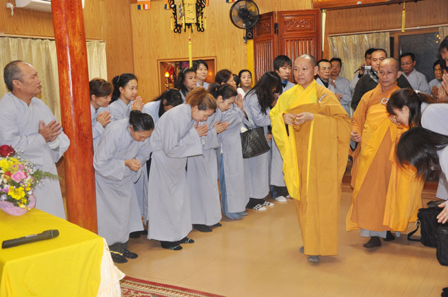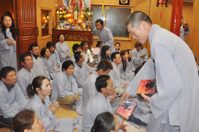 Kết thúc thời pháp thoại Thượng tọa gửi tặng đĩa DVD Lễ Vu Lan cho quý Phật tử