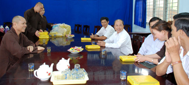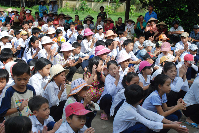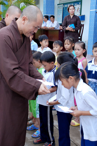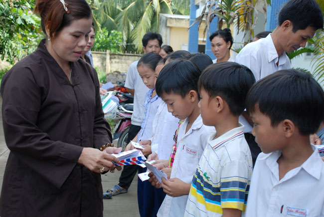 Nhận lời mời của Chủ tịch UBND xã Tân Hưng, huyện Ba Tri, tỉnh Bến Tre về việc xin hỗ trợ dụng cụ học tập cho học sinh nghèo hiếu học xã nhà, sáng qua (16/07/2010), TT. Thích Chân Tính đã có chuyến viếng thăm, nói chuyện và tặng quà cho các em hai trường tiểu học và THCS Tân Hưng.