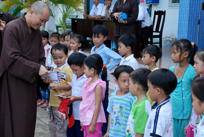 Sau buổi nói chuyện, Thượng tọa đã gởi tặng 250 phần quà đến các em học sinh, mỗi phần trị giá 200.000 đồng. Tổng trị giá là 50 triệu. Số tiền này do Phật tử Liên An phát tâm ủng hộ.