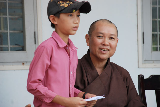 Thượng tọa đã ân cần nhắn nhủ: "là những người trẻ - lớp công dân hữu dụng cho đất nước sau này, các em cần nhớ bốn ân, và phải thiết thực áp dụng chúng hằng ngày trong cuộc sống. Đó là: ân cha mẹ, ân thầy cô, ân đồng bào và ân Tổ quốc. Nhớ đến ân sinh thành dưỡng dục khó khổ của mẹ cha, các em phải biết hiếu thảo, ngoan hiền. Nhớ đến ân truyền đạt kiến thức của thầy cô, các em phải siêng năng học tập. Nhớ đến ân đồng bào đã hỗ tương nhân duyên cho ta trong cuộc sống, các em không nên phung phí mọi thứ. Nhớ đên ân Tổ quốc đã gìn giữ sự bình yên xã hội hằng ngày, các em không được vi phạm pháp luật, dính vào các tệ nạn xấu…" Lời Thượng tọa bình dị mà sâu sắc, bao dung và từ hòa, nhẹ nhàng len lỏi và thấm sâu vào tâm tưởng các em.
