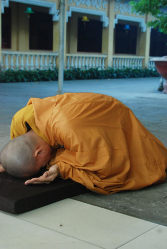 Trải qua gần bốn năm với hành trình nhất bộ nhất bái nguyện cầu “Quốc thái dân an”, sáng 13/12/2012 (nhằm ngày 1/11 Nhâm Thìn), trước toàn thể chư Tăng chùa Hoằng Pháp, Đại đức Thích Tâm Mẫn đã tác bạch xin nhập chúng tu học