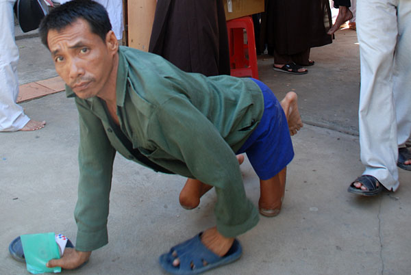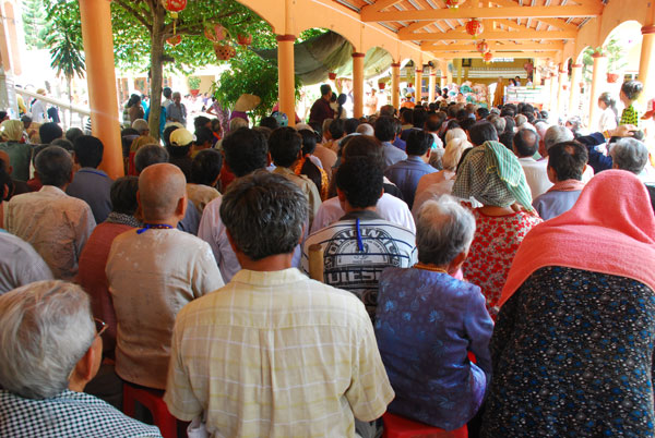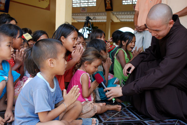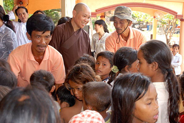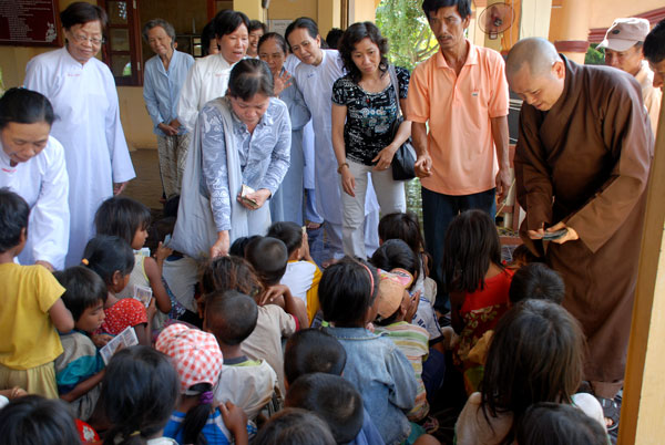 Chuyến đi thêm ý nghĩa khi TT. Thích Chân Tính đã dành chút thời gian để chia sẻ với mọi người nơi đây. Thượng Tọa chia sẻ; con người sinh ra ai cũng phải chết, trong cuộc sống ai cũng gặp những khó khăn đau khổ nhất định. Hiện tại mọi người ở đây đang phải gánh chịu những mất mát về thân thể cũng như tinh thần nhưng chúng ta phải biết tự tin, sống lạc quan và chấp nhận với nỗi đau hiện tại và chỉ có như thế chúng ta mới vượt qua được những nỗi khổ đau… Đặc biệt các em nhỏ ở đây hầu như không được đi học, sự hiện diện của chư Tăng như một hình ảnh quen thuộc trong tâm thức các em, rất gần gũi, thân thiện và không một chút e ngại. Nhìn nét mặt hồn nhiên, ngây thơ của các em bỗng dưng lòng như nặng trĩu, tương lai các em sau này sẽ thế nào, cuộc sống sẽ ra sao và những nỗi đau mất mát của những người đi trước có dư âm và phủ trùm lên những tâm hồn bé nhỏ này hay không? Đây là một câu hỏi đặt ra cho những người có trách nhiệm với cộng đồng, những tấm lòng “vàng” của các “mạnh thường quân” và những người đệ tử Phật như chúng tôi.