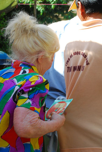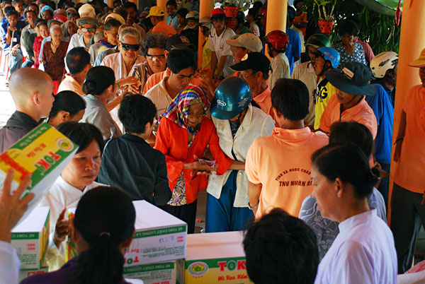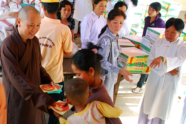 Kết thúc buổi tặng quà là những khuôn mặt rạng rỡ, những nụ cười hồn nhiên, những lời cám ơn chân thành xuất phát từ những con người bình dị chân chất, hòa lẫn trong Thánh hiệu của đức từ phụ A Di Đà như một ước nguyện ngày mai tươi sáng hơn của kiếp người hiện tại.