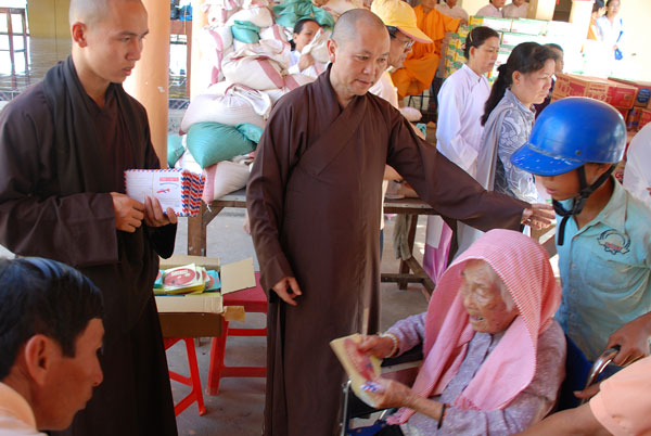 Thượng tọa có đôi lời nhắn nhủ với bà con trước khi tặng quà