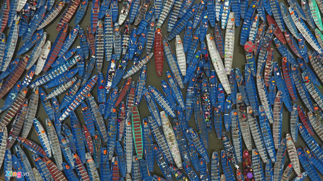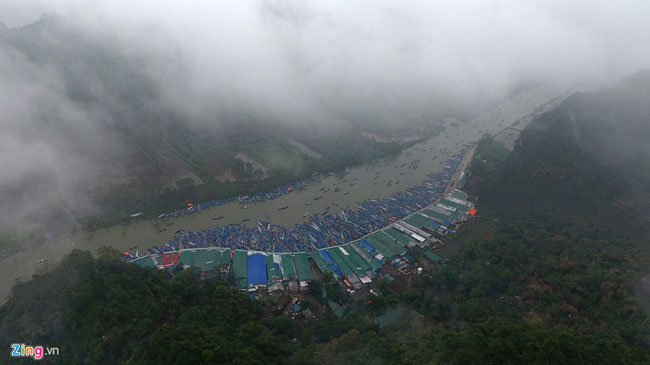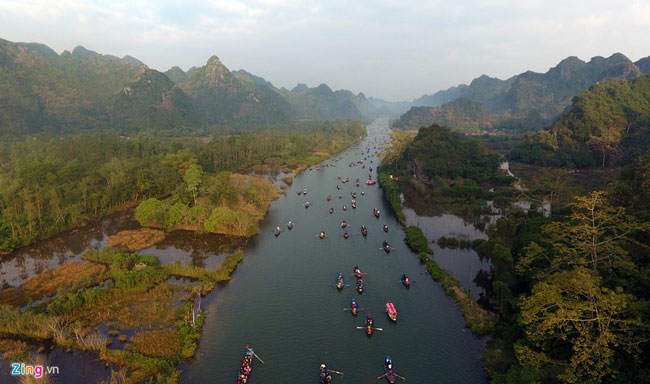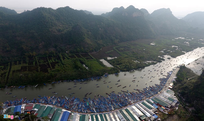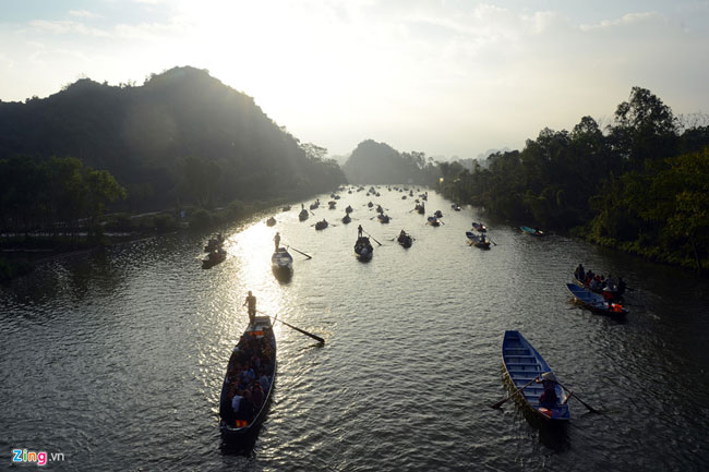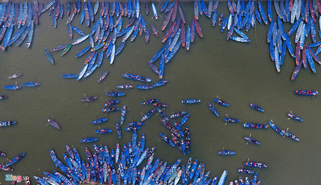 Nhìn từ trên cao, bến Trò (bến đò đến) có thuyền bè xếp dày đặc, tạo thành hình cánh cung ấn tượng. Năm nay, tại các bến xe, bến đò, điểm nghỉ chân... ban tổ chức phục vụ du khách miễn phí nhà vệ sinh. Đây là một điểm mới đáng ghi nhận tại lễ hội.
