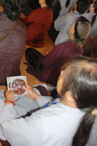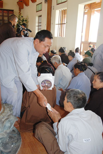 Kết thúc buổi pháp thoại Thượng tọa gởi tặng hơn 1000 VCD “Tu Liều Mạng” cho toàn thể Phật tử.