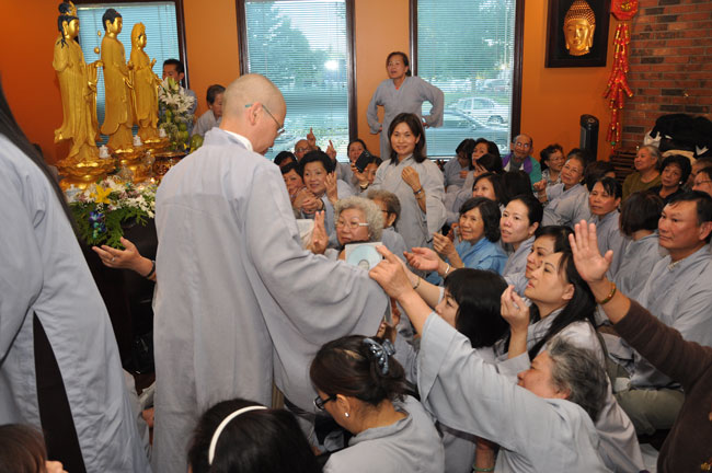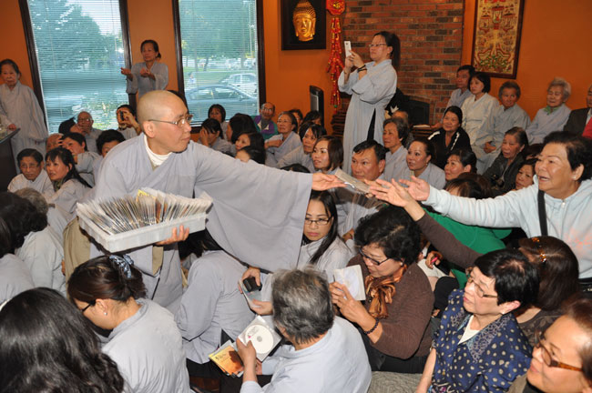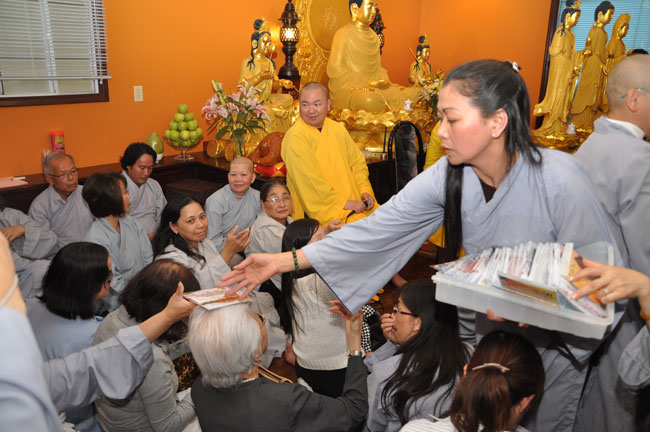 Kết thúc thời pháp thoại Thượng toạ đã gửi những phần quà Pháp bảo đến toàn thể đạo tràng.