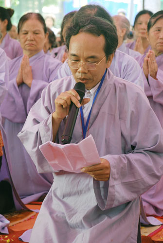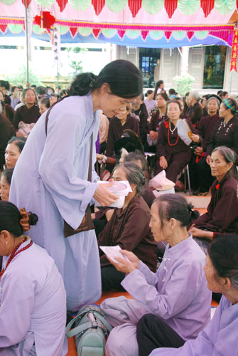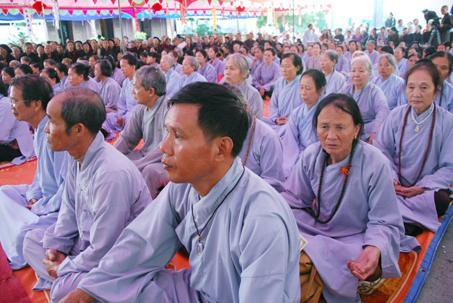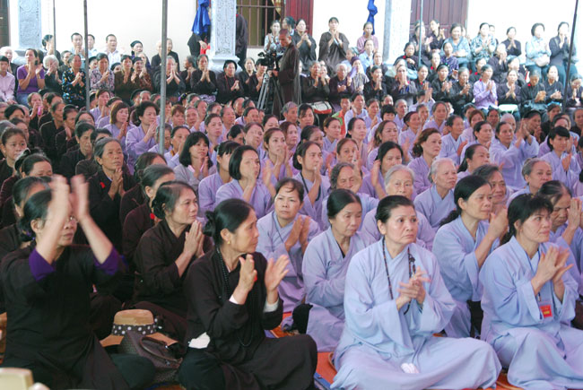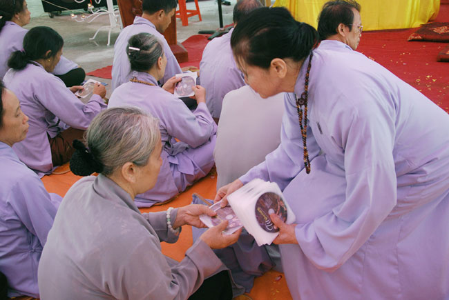 Đối với quý Phật tử TT cũng khuyến khích tinh tấn tu tập. Mỗi người sinh ra trên cuộc đời này, ai cũng có những lỗi lầm không nhiều thì ít. Điều quan trọng của người tu học Phật pháp là phải thấy rõ được những lỗi lầm để sám hối. Sám là nhận biết lỗi lầm, hối là nguyện không tái phạm. Muốn nhận biết được lỗi lầm của mình để sám hối, phải thường đọc kinh nghe pháp. Mỗi tháng người Phật tử nên về chùa sám hối hai lần vào ngày 14 và 30 để nghe những lời Phật dạy, để biết được những lỗi lầm. Nếu có điều kiện mỗi tháng nên tụng một bộ kinh Thủy sám hoặc Lương Hoàng sám. Nhờ đọc tụng những bộ kinh sám này mà chúng ta thấy rõ lỗi lầm hầu sám hối để ba nghiệp mỗi ngày một thanh tịnh. Thường ngày chúng ta luôn tinh tấn niệm Phật, sám hối chắc chắn hiện đời sẽ chuyển hóa được những phiền não tham sân si, chuyển hóa được nghiệp chướng của quá khứ, thân tâm sẽ an lạc. Khi từ bỏ báo thân này sẽ an nhiên tự tại sinh về lạc quốc. Tuy thời pháp diễn ra trong thời gian ngắn ngủi hơn một tiếng đồng hồ, nhưng đã để lại trong lòng quý Phật tử những bài học vô cùng quý giá. Sau khi kết thúc bài pháp, TT cũng đã gửi tới quý Phật tử hơn 700 phần quà Pháp bảo VCD “Tu Liều Mạng”