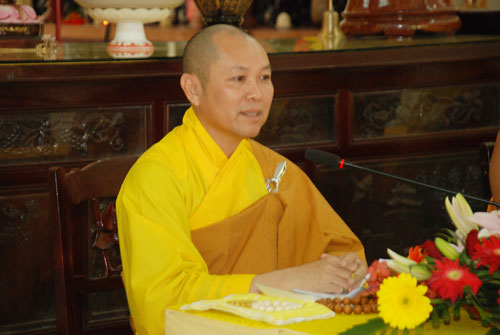 Trong lời đạo từ, Thượng Tọa Thích Chân Tính đã dặn dò cô dâu chú rể về bổn phận của đạo vợ chồng theo lời Phật dạy.