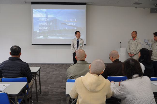 Đoàn được ban điều hành cho xem đoạn phim ngắn giới thiệu quy trình xử lý rác thải, tiếp đó được ông Yamakami trưởng trung tâm và ông phó phụ trách hướng dẫn đến những nơi thực tế.