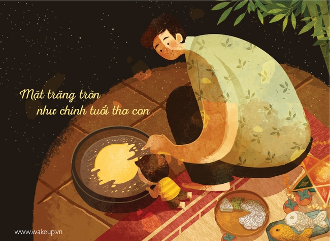 Mệt mỏi sau một ngày dài làm việc nhưng cha vẫn kiên nhẫn cùng con ngồi phá cỗ - ngắm trăng. Bởi hơn ai hết cha hiểu được, tuổi thơ con có trọn vẹn thì lòng cha mới hạnh phúc.