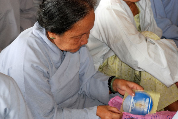 Sau thời pháp, Thượng tọa đã biếu tặng đạo tràng 600 VCD Phật Pháp Nhiệm Mầu kỳ 23.