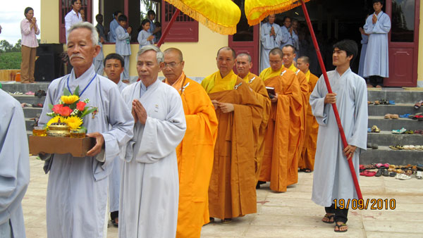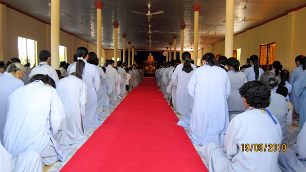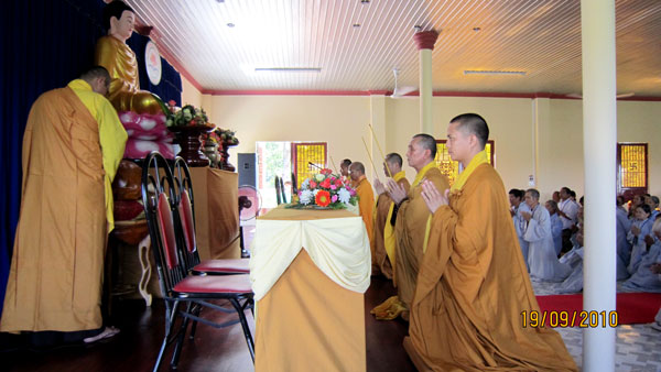 Hôm qua (ngày 19/09/2010, nhằm 12/08 Canh Dần), thể theo lời thỉnh cầu của ĐĐ. Thích Tâm An – Trụ trì chùa Hưng Pháp (Xuân Lộc, Đồng Nai), TT. Thích Chân Tính cùng chư tăng chùa Hoằng Pháp đã quang lâm đạo tràng, truyền trao quy giới cho Phật tử.
