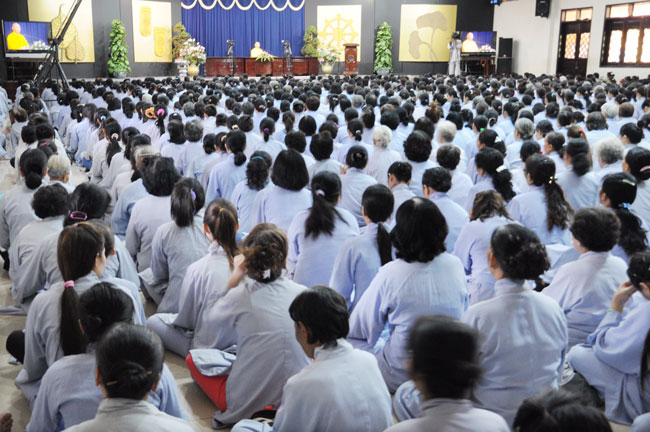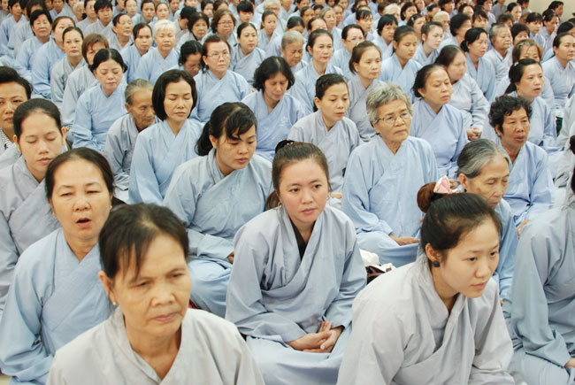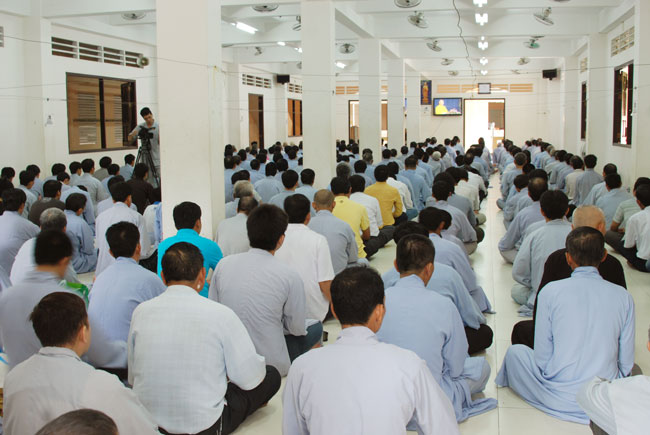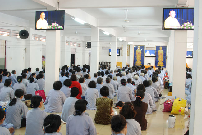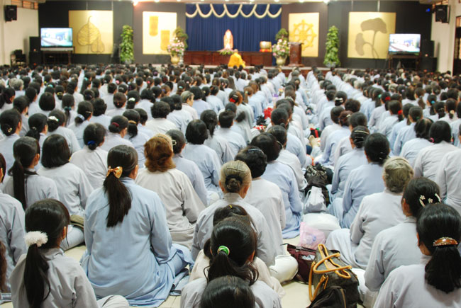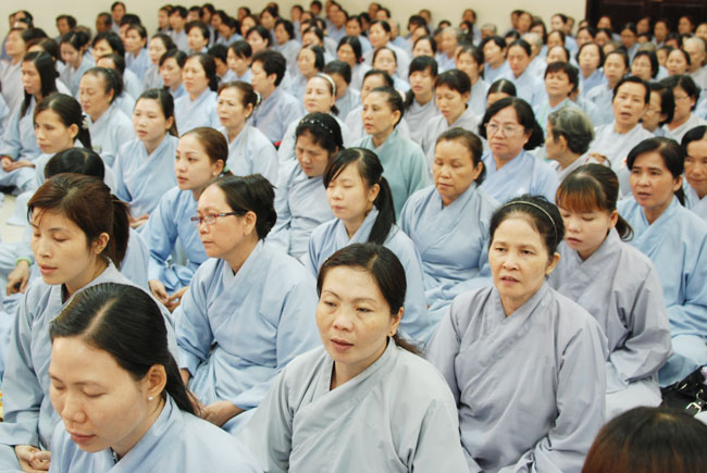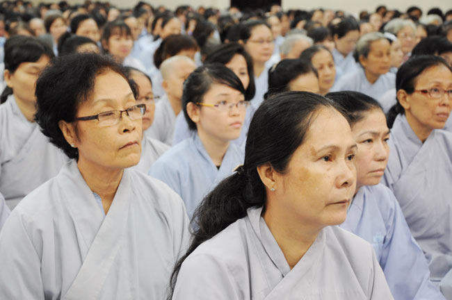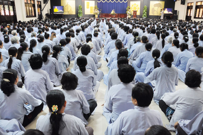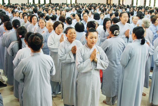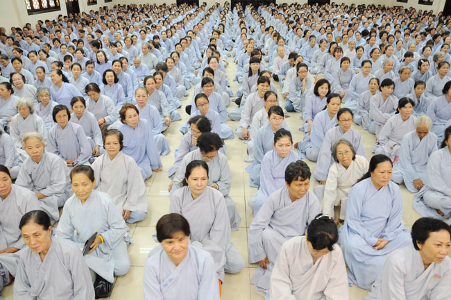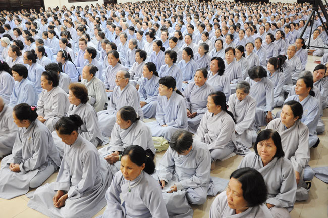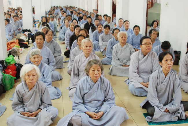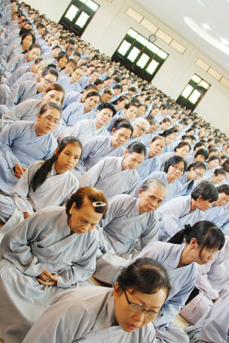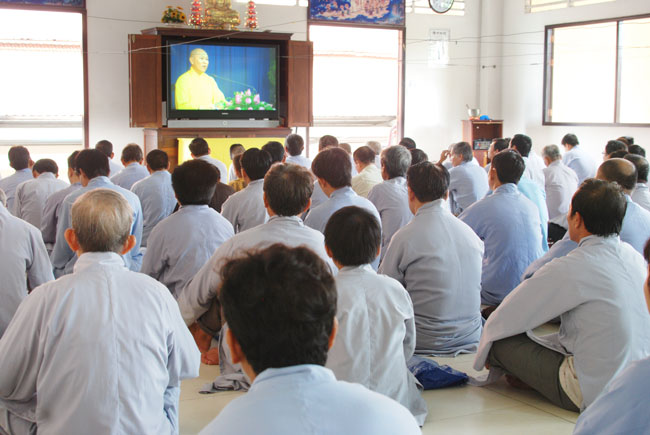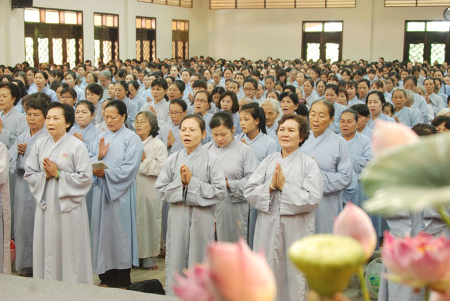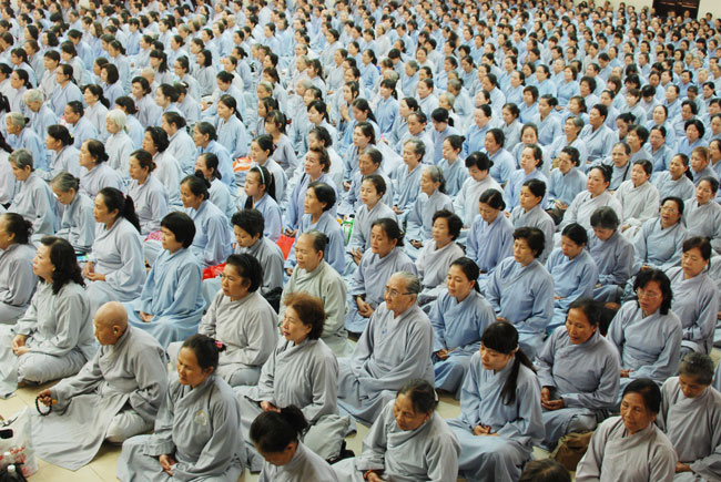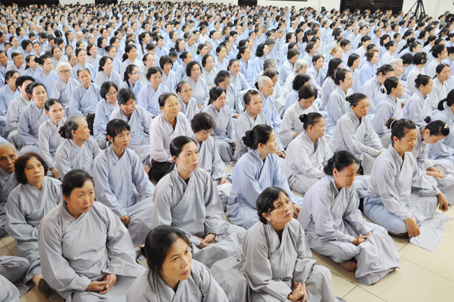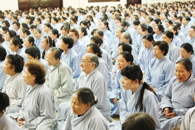 Sau thời pháp nhũ, toàn thể đại chúng nhất tâm bước vào thời khóa công phu niệm Phật.