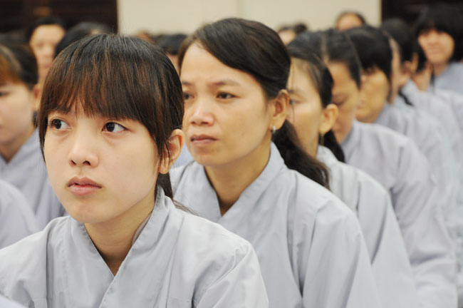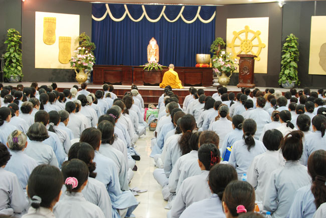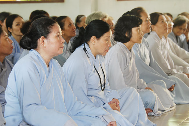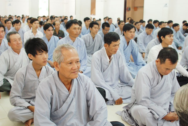 Buổi sáng, sau khi các Phật tử dùng điểm tâm sáng và ổn định tổ chức tại các khu vực giảng đường, Thượng tọa Thích Chân Tính đã có thời pháp nhũ gửi đến toàn thể đại chúng. Nội dung bài pháp xoay quanh vấn đề về “giới” trong nhà Phật. Căn bản của người tu học Phật pháp là giới – định – huệ, trong đó giới chính là nền tảng của định – huệ. Giới cũng là gốc của muôn hạnh lành, do đó, người có giới chính là người có nhân cách, có đạo đức và làm chủ được 3 nghiệp thân, khẩu, ý. “Vào nhà Phật pháp lấy tín làm đầu, tu học Phật pháp lấy giới làm gốc.” Cho nên, trong kinh Di Giáo, Phật dạy: “Này các thầy Tỳ Kheo sau khi Như Lai diệt độ, các thầy phải trân trọng tôn kính tịnh giới, như mù tối mà được mắt sáng, nghèo nàn mà được vàng ngọc, phải biết tịnh giới là đức thầy cao cả của các thầy. Nếu ta ở đời cũng không khác gì tịnh giới ấy... Thế nên các thầy Tỳ Kheo, hãy giữ tịnh giới đừng cho hủy phạm, thiếu sót. Ai giữ tịnh giới thì người đó có thiện pháp. Không có tịnh giới thì mọi thứ công đức không thể phát sinh. Do đó mà biết tịnh giới là chỗ an ổn nhất, làm nơi trú ẩn cho mọi thứ công đức.”