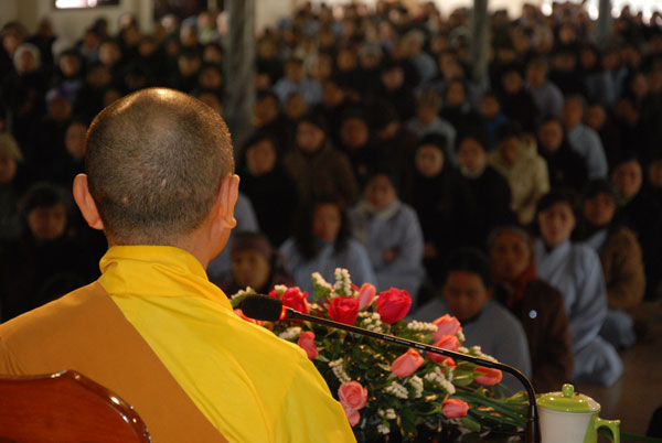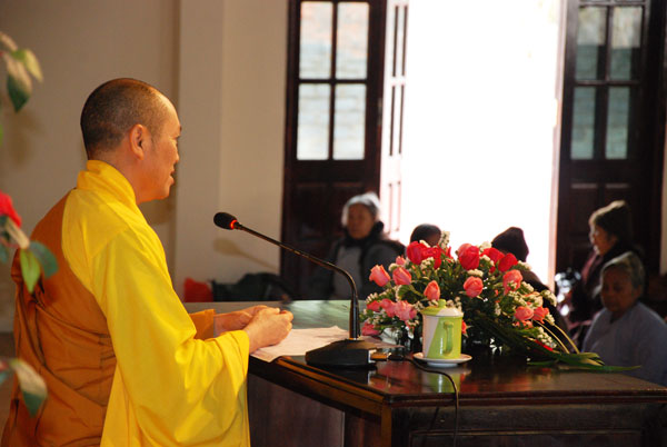Vào lúc 10 giờ sáng, trong giảng đường chính chùa Diên Quang, Thượng tọa Thích Chân Tính có buổi nói chuyện cho hơn 1.000 Phật tử. Trong thời pháp Thượng tọa đã tán thán sự tu học của thiện nam tín nữ một năm qua và sách tấn mọi người nên kiểm điểm lại quá trình tu học của mình, những gì đã làm được và những gì chưa làm được, nên rút ra ưu, khuyết điểm, cố gắng năm tới sẽ tu học tiến bộ hơn năm nay. Mỗi năm phước đức trí tuệ càng tăng, ba nghiệp mỗi ngày thanh tịnh. Có như vậy thì việc tu học mới thực sự tiến bộ và lợi ích an lạc cho hiện tại cũng như tương lai.
