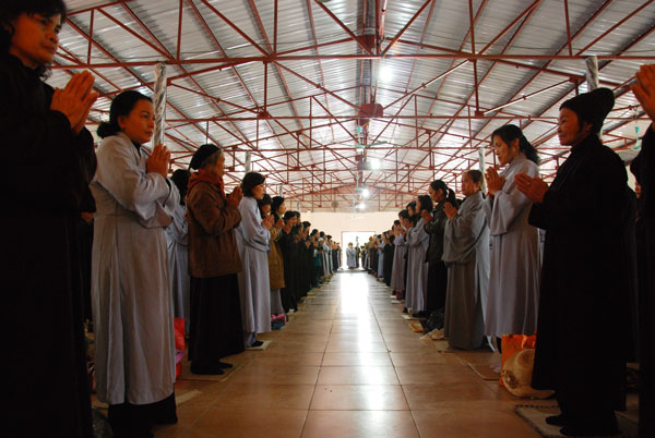 Trong cái không khí lạnh buốt của ngày cuối Đông và những bận rộn chuẩn bị đón tết Canh Dần, thế nhưng Phật tử cũng không quên một ngày tu niệm Phật tại chùa Diên Quang. Ngay từ sáng sớm các thiện nam tín nữ gần xa đã vân tập về chùa trong niềm hân hoan chuẩn bị cho một ngày tu cuối cùng của năm Kỷ Sửu.