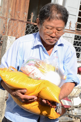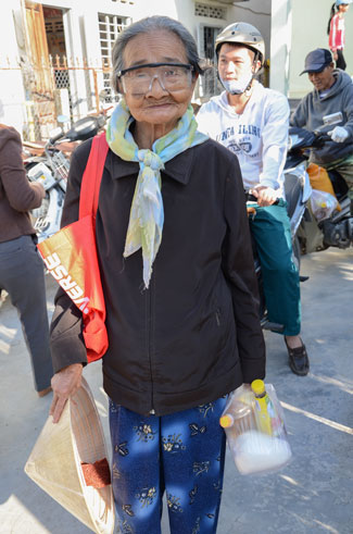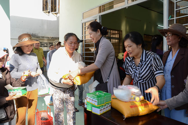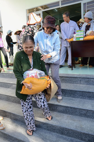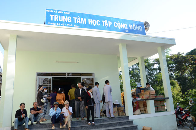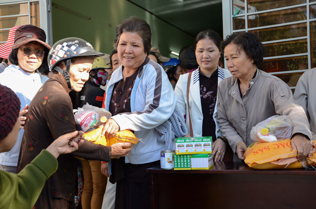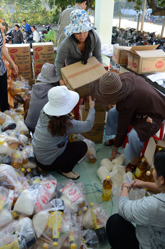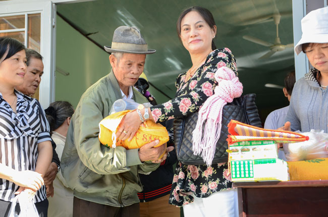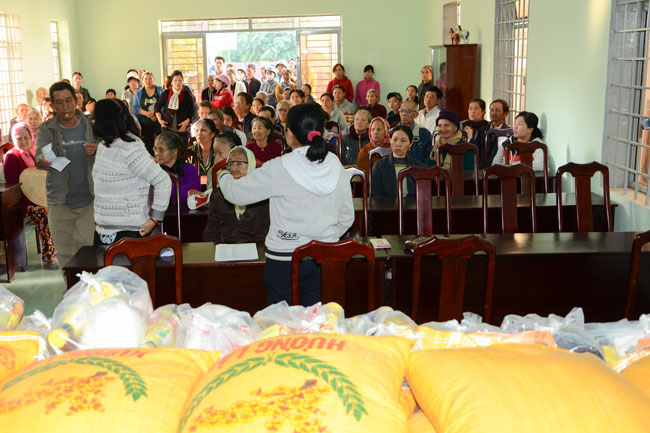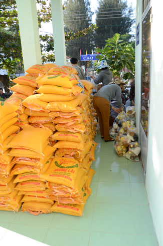 Rạng sáng, đoàn đã có mặt tại UBND xã Vĩnh Ngọc và trao tặng 208 phần quà cho dân nghèo. Mỗi phần quà trị giá 220,000đ gồm: gạo, dầu ăn, nước tương, đường, bột ngọt.
