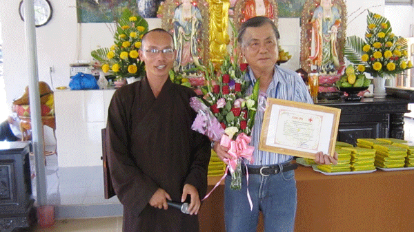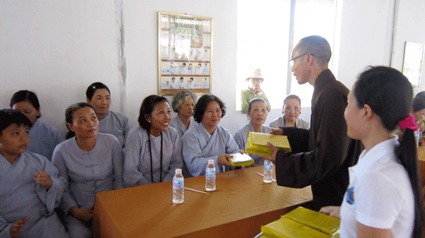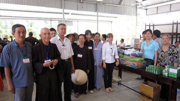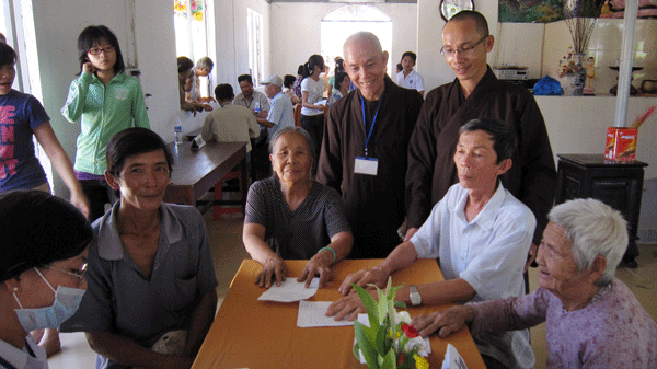 Thầy Thích Tâm Huệ hướng dẫn đoàn y bác sĩ thuộc Hội Y Học Cần Thơ đến khám, điều trị và cấp thuốc miễn phí cho bà con huyện Xuân Lộc.