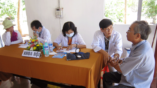 Được biết, đây là đoàn y bác sĩ thường xuyên tổ chức những đợt khám bệnh và điều trị từ thiện cho dân nghèo, đặc biệt là các nơi trực thuộc địa bàn vùng sâu vùng xa. Cùng đi chung đoàn có thầy Thích Tâm Huệ – tăng chúng chùa Hoằng Pháp, trưởng đoàn BS. Trần Văn Tốt và một số y, bác sĩ đến từ TP. HCM, tất cả khoảng 20 vị.